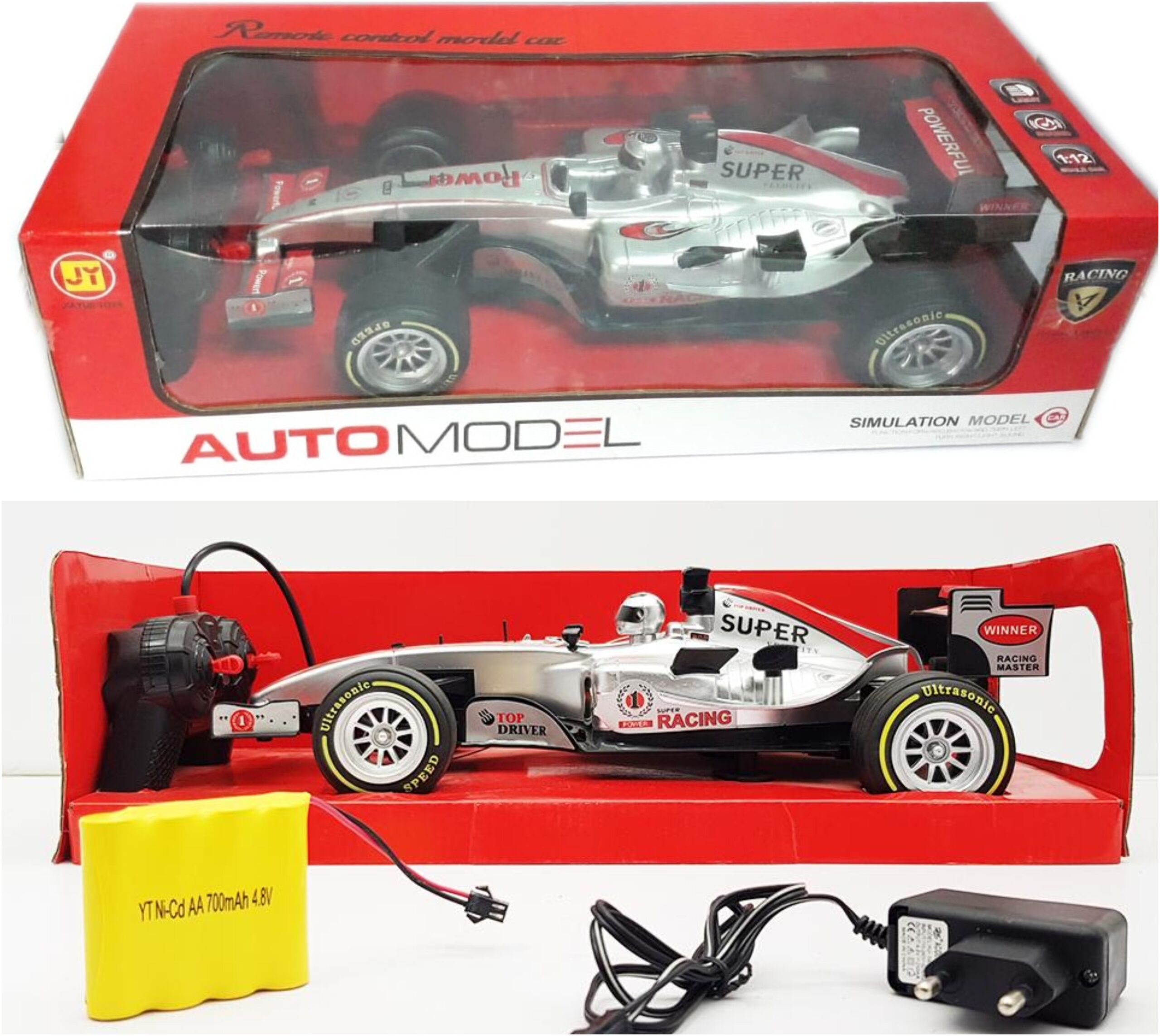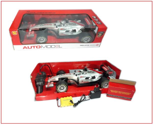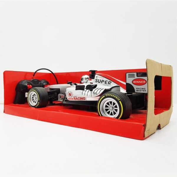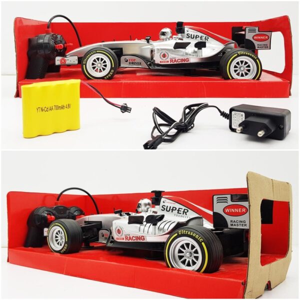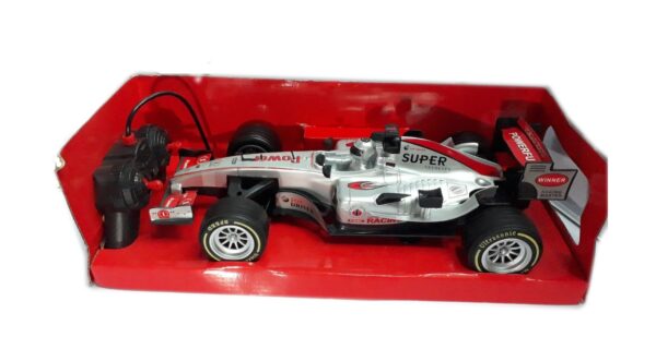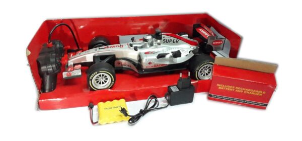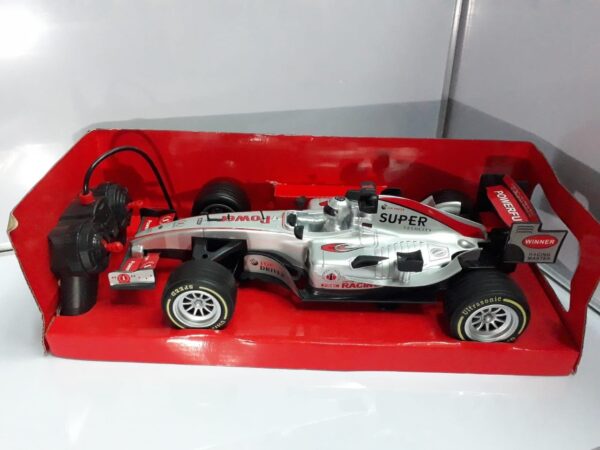Magnifique voiture de course Formule 1. Avec son chargeur et sa batterie électrique la puissance est augmentée. Tournez à droite, gauche, avant ou arriére avec la télécommande sans fil à distance. Des heures d’amusement en famille à l’intérieur ou éxtérieur.